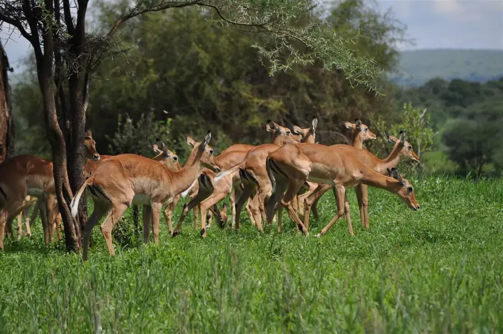 Located within an arid belt, Tarangire’s landscapes are dominated by a wooded savannah rich in Acacia, Terminalia, Combretum, and Commiphora trees. The park’s unique vegetation includes riverine woodlands, Acacia tortilis parklands, seasonal floodplains, riverine grasslands, and scattered baobab-dotted plains, along with acacia-commiphora woodlands and combretum-dalbergia thickets. Kopjes (rocky hilltops), deep gullies, and Silale Swamp add to the variety, supporting a complex ecosystem that thrives despite the arid environment.